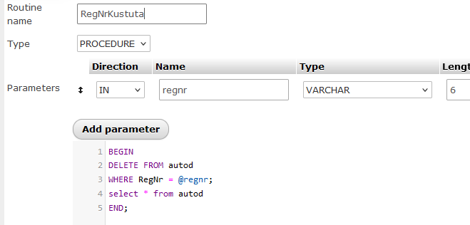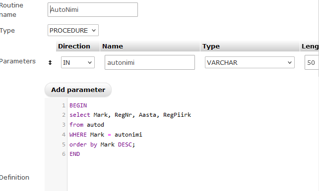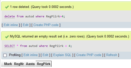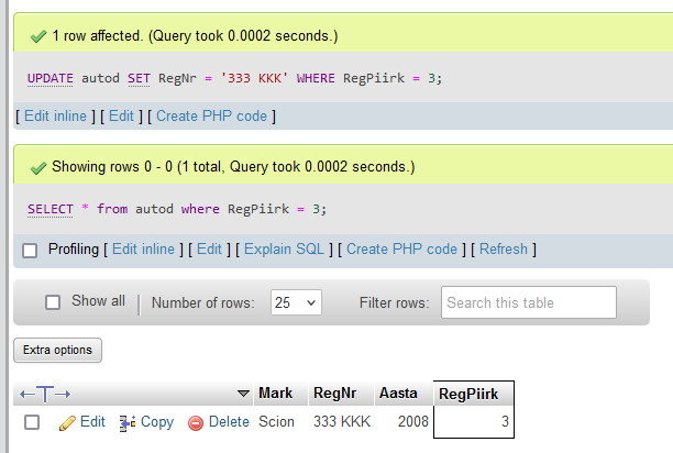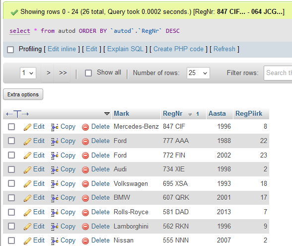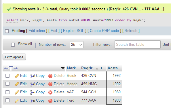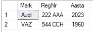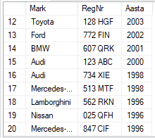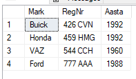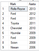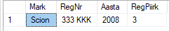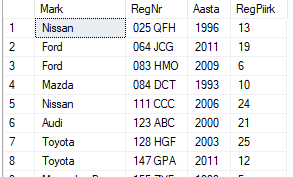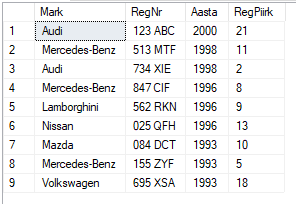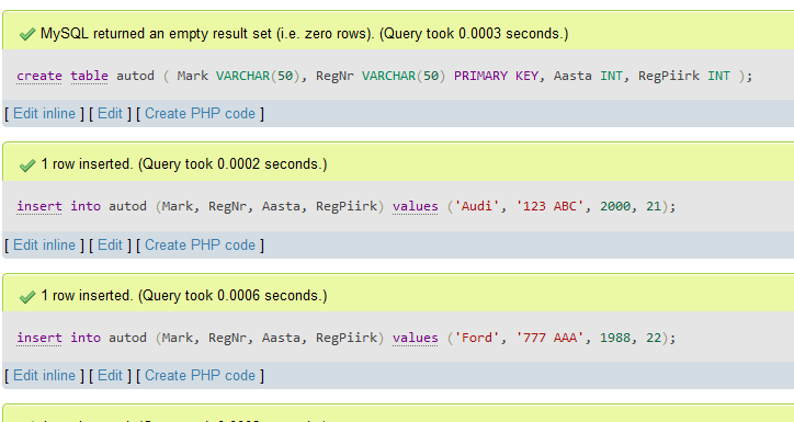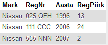 insert into autod (Mark, RegNr, Aasta, RegPiirk)