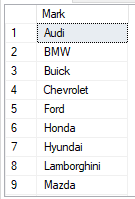 insert into autod (Mark, RegNr, Aasta, RegPiirk) values ('Mercedes-Benz', '513 MTF', 1998, 11);