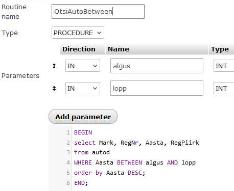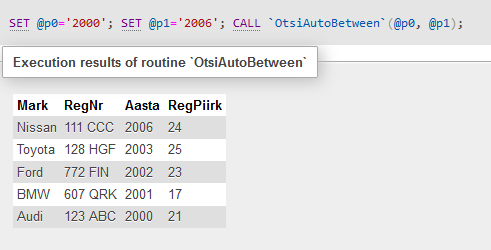 WHERE Aasta BETWEEN @algus AND @lõpp