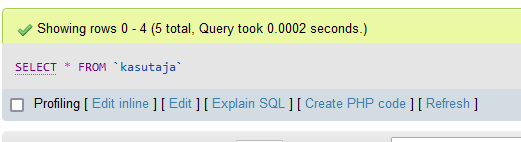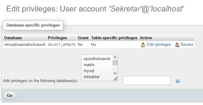 Lisa Andmebaasi õigused User accounts (Choose)> Edit privileges > Database > Add privileges to database