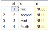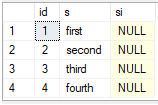 INSERT INTO T(id, s) VALUES (4, 'fourth');