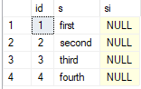 INSERT INTO T(id, s) VALUES (2, 'second');