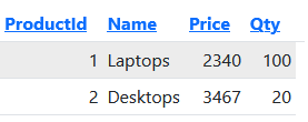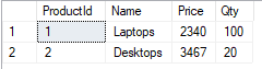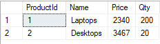 VALUES (1, 'Laptops', 2340, 100), (2, 'Desktops', 3467, 20);