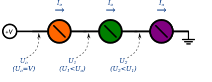 5. Последовательное подключение – При последовательном подключении сила тока в каждом потребителе — одна и та же, различается напряжение: в каждом компоненте падает его часть.