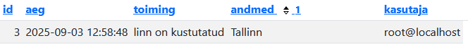 INSERT INTO logi(aeg, kasutaja, toiming, andmed)