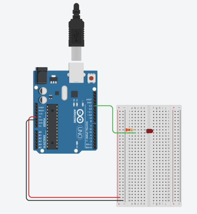 Loop() paneme digitalWrite(), iga sekund lülitab LED välja (LOW) ja lülitab sisse (HIGH). Kõik toimub pin 13