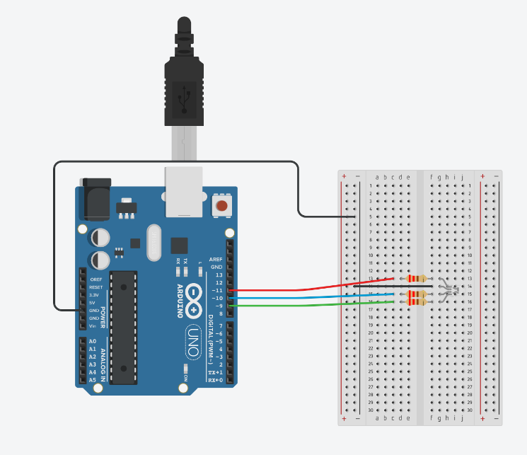 RED_PIN = 11, GREEN_PIN = 9, BLUE_PIN = 10