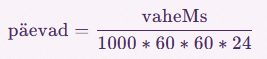 • Arvutatakse vahe millisekundites, teisendatakse päevadeks: